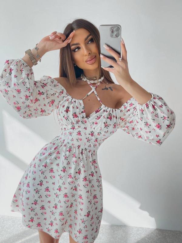 НОВИНКА🌺 Сукня Мод: 492 Тканина: софт Размеры: 42-44, 46-48 Цвета: белый с розовыми цветками, черный с розовыми цветками, голубой с цветами Фото актуального принта в голубом цвете добавлено в коллекцию. Фото реал🔥 Отличное качество! Самое нежное женственное платье из воздушной невесомой ткани. Спинка платья идет на резиночках, поэтому адаптируется под любой тип фигуры. Очень хорошо тянется. На груди за трещотка, которую можно завязать в двух вариациях, а также ею можно регулировать объем в груди.
