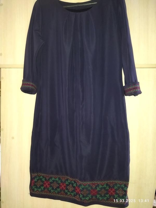 Платье темно синего, чернильного цвета. С машинной вышивкой орнаментом. Красиво ложится по фигурке. ПОГ 52 см, длина 96 см, рукав 46 см