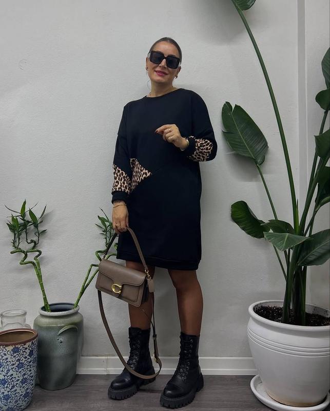 ❤️Мод 1390 💎Сукня жіноча 💎Розміри: 48-50, 52-54, 56-58 ❤️Тканина: високоякісна двонитка + трикотаж 💎Колір: чорний + лео ❤️Тканина має гарну розтяжність, не скочується та не просвічується ✅Якість ідеальна 📌ВИМІРИ: 48-50 ОГ 110, ОТ 110, ОБ 110, довжина рукава від горла 73, довжина виробу 100 52-54 ОГ 120, ОТ 120, ОБ 120, довжина рукава від горла 74, довжина виробу 101 56-58 ОГ 130, ОТ 130, ОБ 130, довжина рукава від горла 74, довжина виробу 102