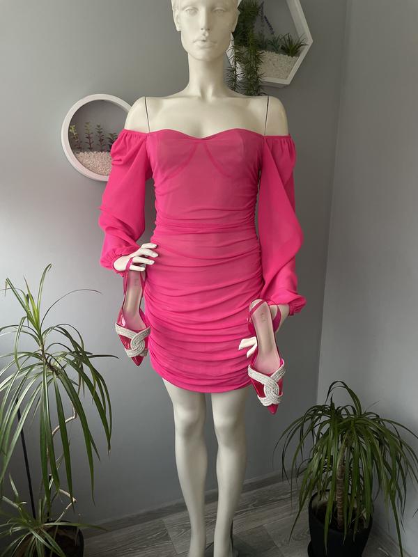 Плаття з сітки з обʼємними рукавами