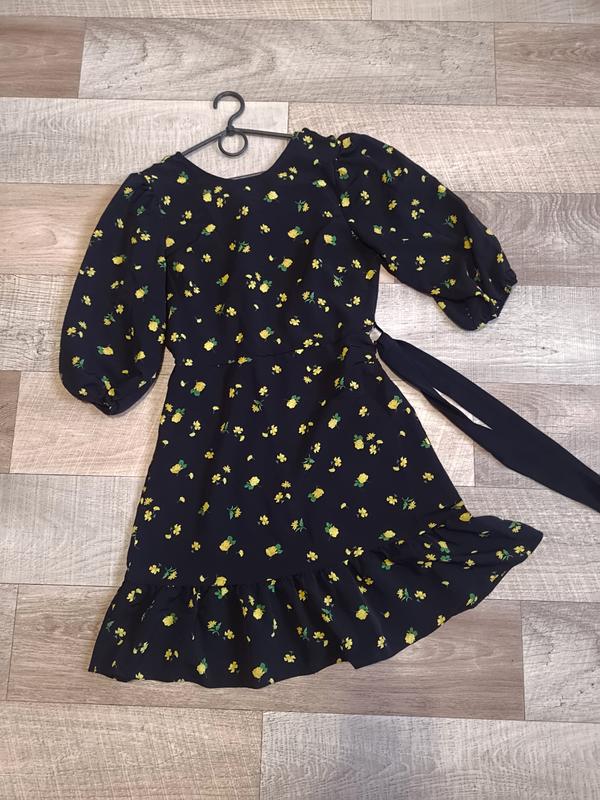 жіноча сукня розмір 42 чорна з жовтими квітами на талії зав'язується пояс стан ідеальний, вдягалася один раз ціна 350 запитуйте заміри можлива знижка ✨ не Zara