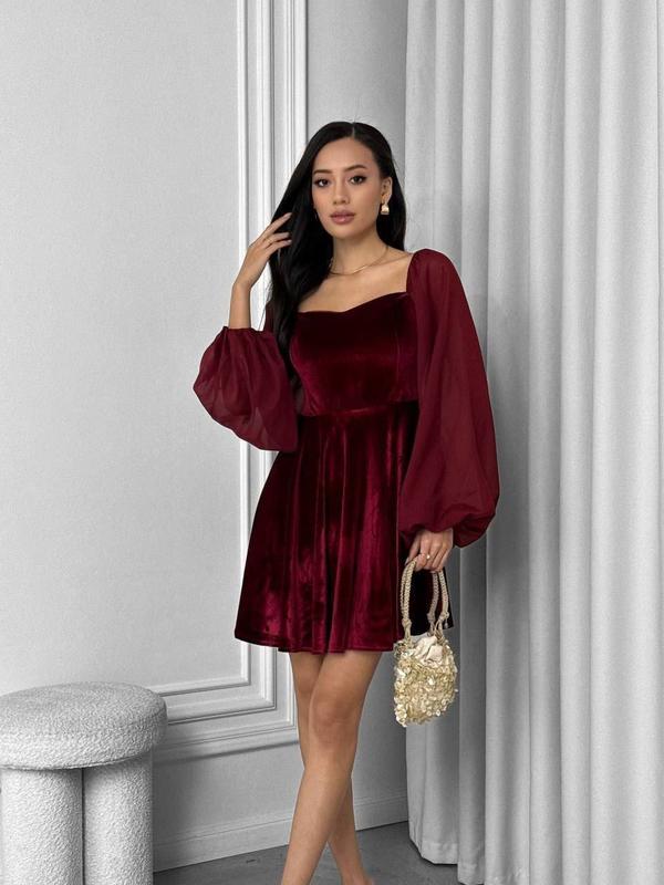 ◾Сукня ◾Мод: 1463-512 ◾Тканина: бархат, рукав шифон ◾Размер: 42-44, 46-48 ◾Цвет: черный, марсал