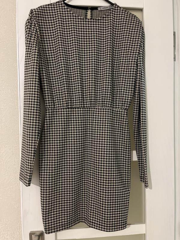 Платье в гуся лапку, черно-коричневое, не ношное, не покошлаченое, замера теплая ткань