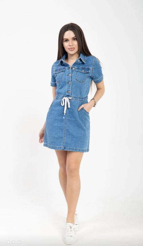 Красивое платье на весну лето, джинс, на пояске. Модель по фигуре. Вдета один раз, оказалась маленькая. На объем груди 82-84, талию 62-64, бедра 88-90. Это по размерной сетке. Точные замеры по запросу. Отправка Новой Поштой или с Розетка. Есть безопасная оплата