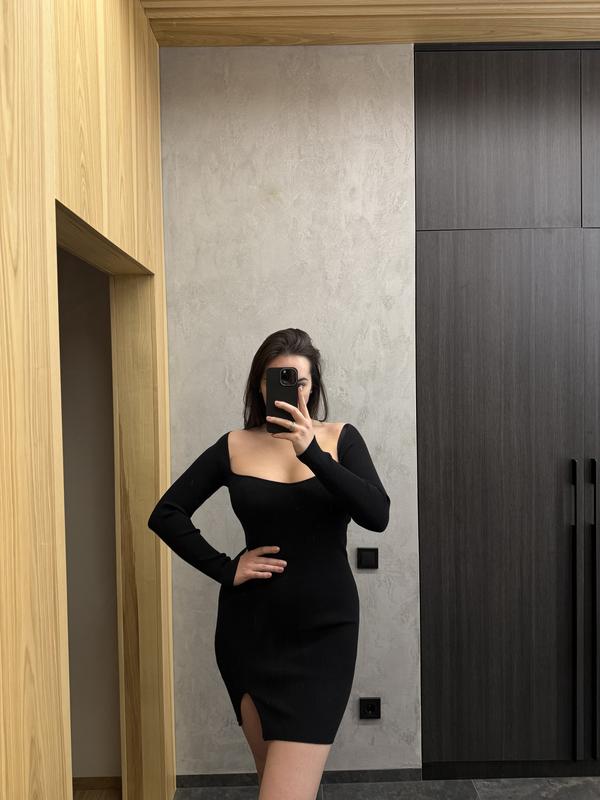 Черное платье украинского бренда dilvin. Очень хорошо тянется, не слишком короткое. Тепле , можно на весну