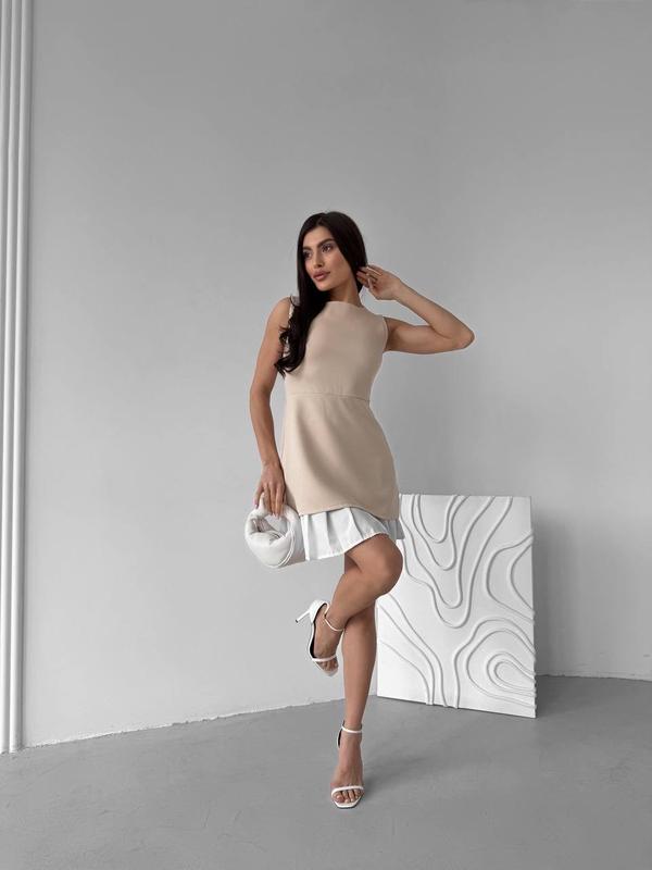 Арт. 46520, 46518, 46514 ▪️ матеріал: верх – костюмна, спідниця – софт. ▪️ колір: чорний, бежевий, сірий ▪️ розміри: 42 (S), 44 (M), 46 (L), 48 (XL) Орієнтовні заміри по готовому виробу: 42 (S): ОГ - 84-88 см, ОТ - 62-66 см, ОБ - 90-94 см, довжина - 78 см, довжина зі спідницею - 87 см. 44 (М): ОГ - 88-92 см, ОТ - 66-70 см, ОБ - 94-98 см, довжина - 79 см, довжина зі спідницею - 88 см. 46 (L): ОГ - 92-96 см, ОТ - 70-74 см, ОБ - 98-102 см, довжина - 80.5 см, довжина зі спідницею - 89 см. 48 (XL): ОГ - 96- 100 см, ОТ - 74-78 см, ОБ - 102-106 см, довжина - 82 см, довжина зі спідницею - 91 см.