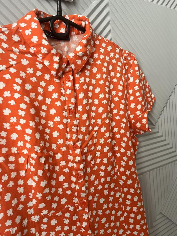Плаття сукня на ґудзиках комірець поло помаранчева віскоза квітковий принт