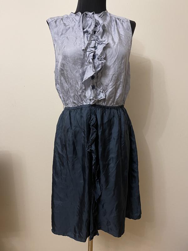 Сукня 12 розміру. Зовні шовк, зсередини підкладка під спідницею поліестер. Бренд Holly Willoughby. Плечі 34 см, ПОГ 52 см, ПОТ 35 см, тягнеться до 48 см, ПОС 57 см, довжина до талії 36 см, загальна довжина 90 см. Стан ідеальний, зачіпок, плям немає.