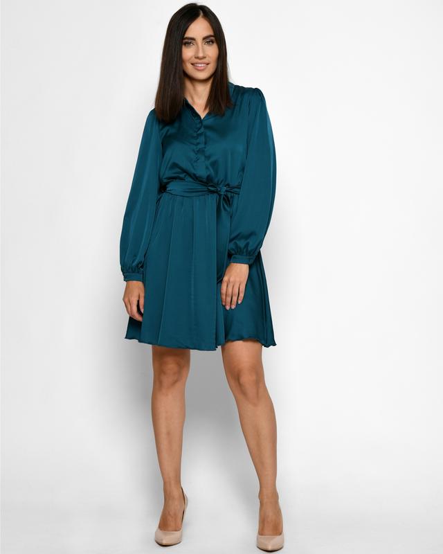Шелковое мини-платье. Романтический фасон в сочетании с лаконичной элегантностью. Модель имеет длинный рукав на манжете с пуговицей, эластичную резинку на талии и расклешенную юбку. Застежка на тайные пуговицы.