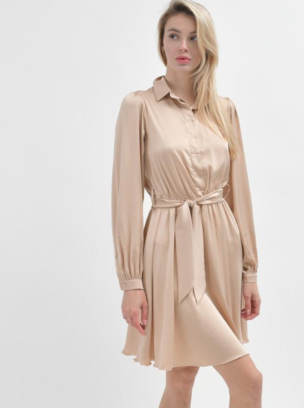 Шелковое мини-платье. Романтический фасон в сочетании с лаконичной элегантностью. Модель имеет длинный рукав на манжете с пуговицей, эластичную резинку на талии и расклешенную юбку. Застежка на тайные пуговицы.