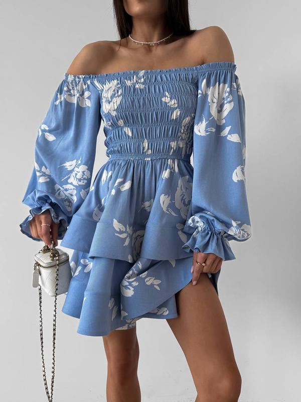 Короткое приталенное платье с пышной двухслойной юбкой и объемными рукавами
