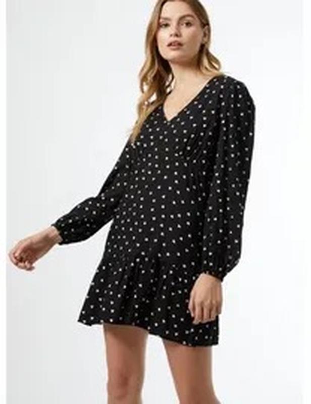 Сукня з натуральної тканини. З V образним вирізом. Принтована сердечками. Розмір 14/євро 46 Заміри: Пог 56 см. Рукав 60 см. Довжина 83 см. Віскоза 100%
