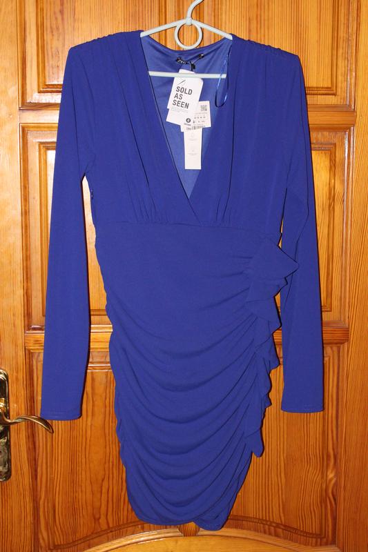Новое Платье мини на длинный рукав синего цвета. Сбоку на замке Размер М Длина 94 ПОГ 44 Рукав от плеча 64 Плечи 44