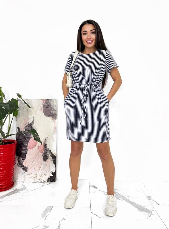 Мод.866 Сукня Тканина софт. Цвета синяя полоска,серая полосками
