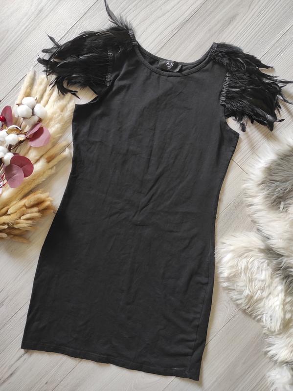 Черное трикотажное платье с натуральными перьями на плечках указан размер 12/л ог 42см от 37см об 42см ткань красиво тянется состояние новой вещи оплата на карту, отправка по плате 200грн, также можете оформлять безопасную доставку 💌