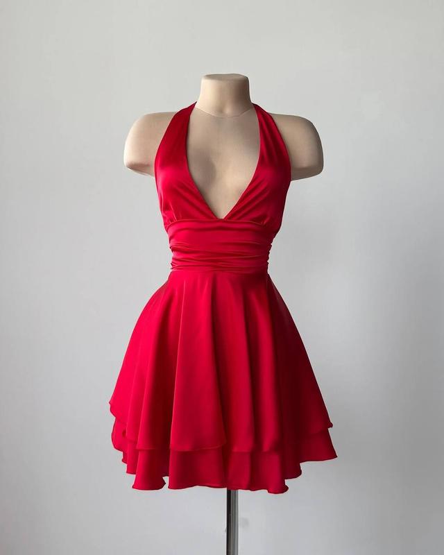 Женское шелковое платье с декольте открытой спиной по спинке праздничное черное красное
