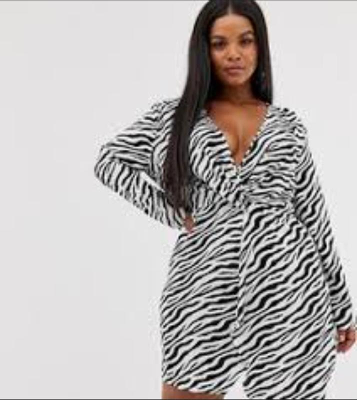 Платье сукня с имитацией запаха принт зебра с длинным рукавом р. 20