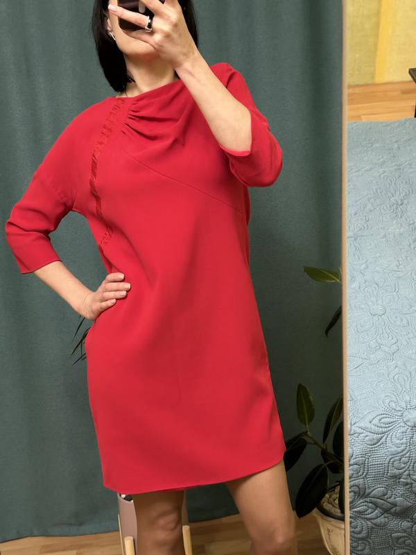 Красное женское платье в стиле минимализм. Модель прямого кроя, длина выше колена. Рукав три четверти, что добавляет образу элегантности. Горловина лодочкой с легкими драпировками на одном плече создает интересный акцент. Особенность дизайна – декоративная полоса из ткани в тон, исходящая от плеча к низу платья с левой стороны, визуально подчеркивая силуэт. Ткань приятная на ощупь, держит форму, имеет легкий матовый блики. Идеально подходит как для офиса, так и для вечерних выходов. Бренд - Ice iceberg. Цвет - красный. Размер - s/m. Замеры: Плечи - 42 см. (рукав приспущен) Ширина - 50 см. НОГ - 53 см. Длина - 90 см. Длина рукава - 29 см. Стан идеален. Условия отправки и покупки: 🚖Отправка Новая почта, Укрпочта, Мист Экспресс, Розетка. 💳Оплата на карту, за условленности - наложен платеж 💯Безпечна оплата Shafa