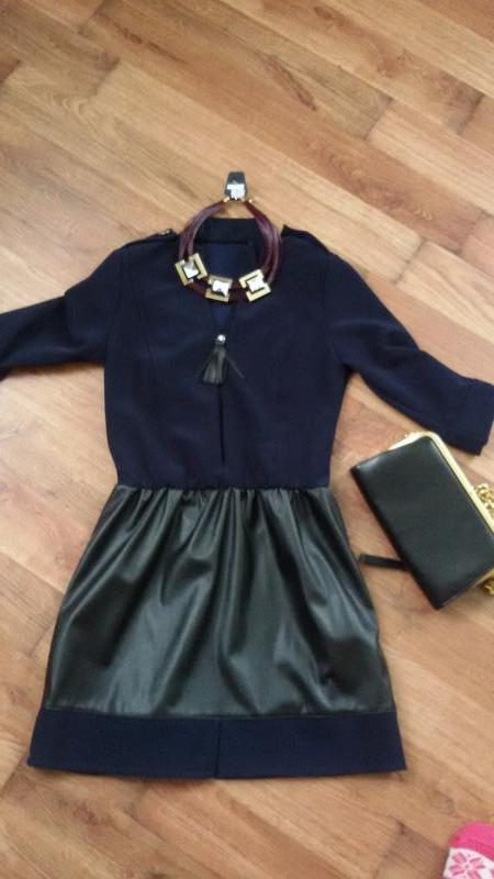 Шили на замовлення.низ кожзам. Темно синій колір чорна юбка. На замочку. Коротке.