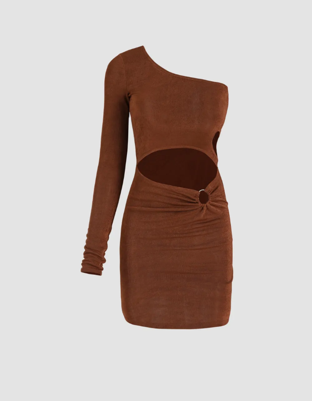 сукня міні Cider в стилістиці y2k. красивий трендовий відтінок кориці. сукня на одне плече.