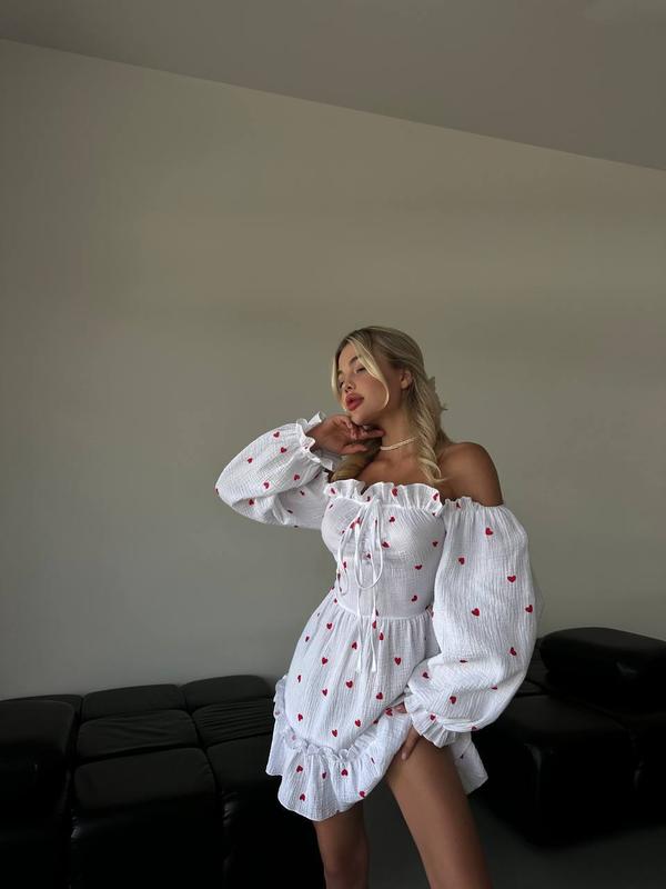 Новинка😍 Фото реал🥰 Сукня Мод.601 Цвет: белый с сердечками, белый с цветами Размеры: 42-44, 46-48 Ткань: муслин принт Легкое, воздушное, женственное 🕊💔 Чувствуй себя всегда комфортно 😉