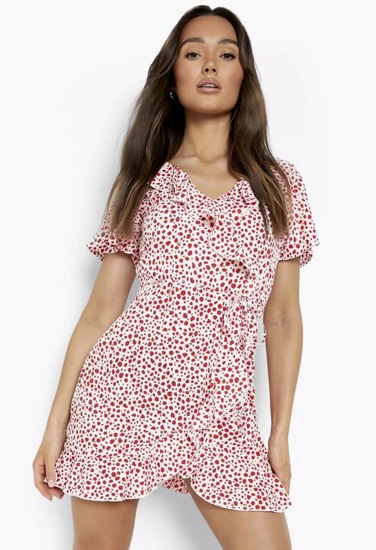 Платье в красный горошек BOOHOO Размер:M/L Замеры:ПОГ:50 см ПОТ:47 см ПОБ:58 см Длина от плеча:95 см На талии есть завязочки, можно регулировать под фигуру Больше вещей в инсталграм: pretty_outfit_ua