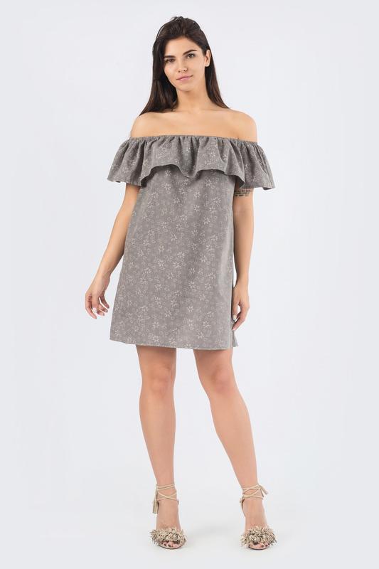 Идеальная модель для летнего сезона. Ее выделяет красивый и оригинальный крой. Особенности: открытые плечи и руки, верх подчеркнуто широким воланом, мини длина, свободный фасон. Такая модель может подчеркнуть стройность ножек ее обладательницы и хорошую линию плеч, а также скрыть мелкие недостатки.