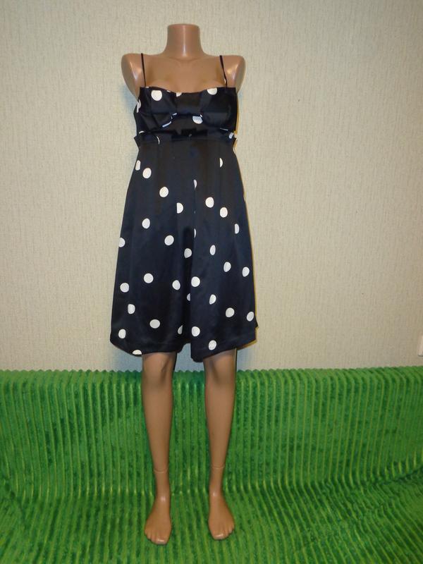Платье сарафан в горошек. застежка сбоку молния размер Л Замер: Длина сбоку 67 см. , длина шлеек регулируется ширина в груди - 47 см