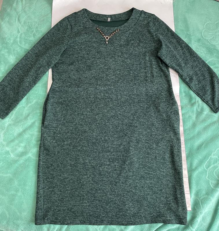 Сукня приємної тканини, одягалася 2 рази. Довжина 96см, напівобхват 56см. На бірці розмір 58.