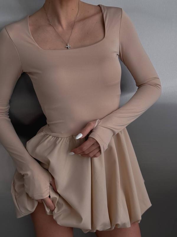 Арт 1558-332 Сукня ☑️Ткань: верх микродайвинг, низ софт ☑️Размеры: 42-44; 46-48 ☑️Цвета: черный, розовый, бежевый Цена 770 грн Невероятно женская мини-платье с вырезом в зоне декольте и объемной юбкой, которая подчеркивает талию и ноги Юбка у платья двойная благодаря чему придает пышности и невесомости