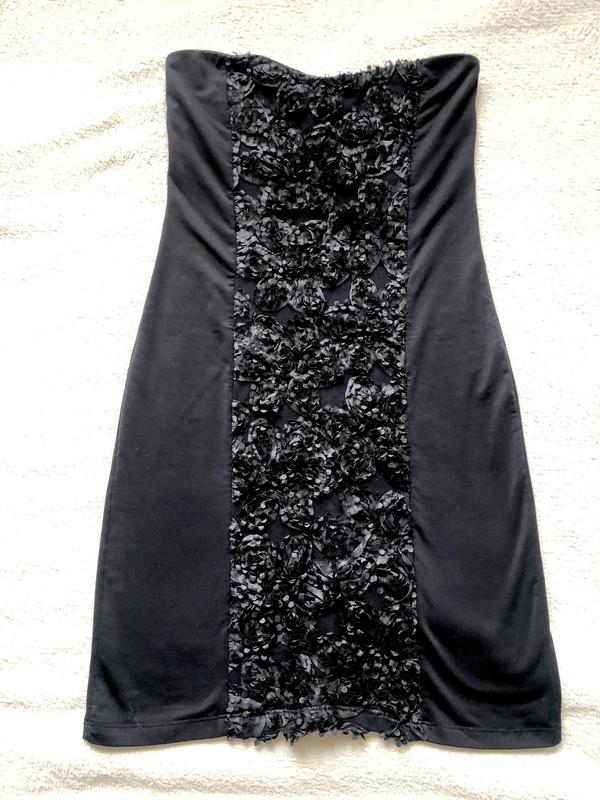 Сукня з відкритими плечима. Практично, як «маленька чорна сукня». З піджаком гарно виглядає. Заміри на фото.