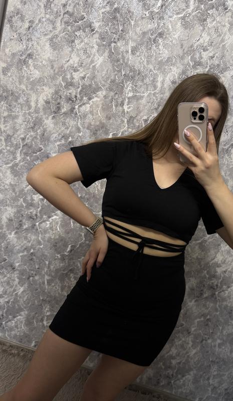 Черное коттоновое платье с шнуровкой спереди Размер 10 Длина 85-86 ПОГ 45 ПОТ 35 ПОБ 42