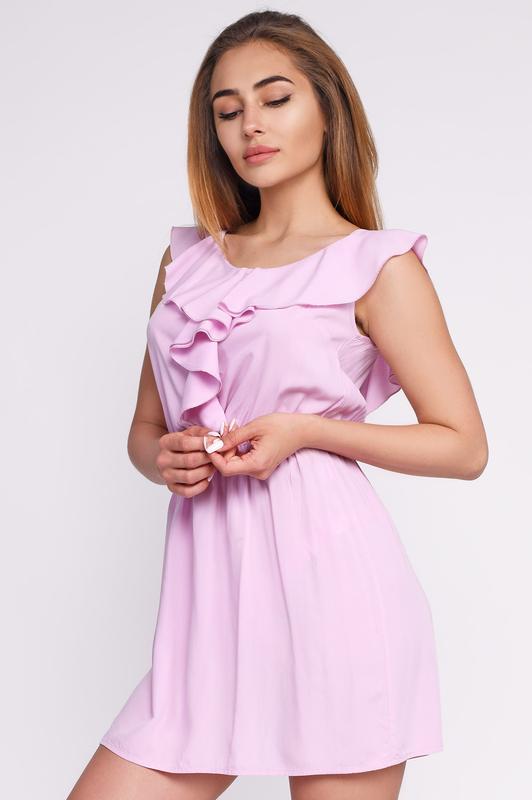 Нежное мини-платье понравится каждой девушке. Особенности: круглый вырез, открытая спинка, талия на резинке. Декорирована красивой оборкой, спускающейся к середине талии. Надевайте ее на праздники, коктейльные вечеринки, и даже на каждый день.
