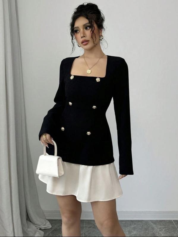 Оригинальное платье мини двойное с квадратным вырезом и длинными рукавами