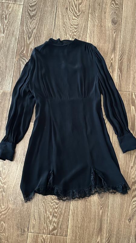 Черное платье, очень легкое, ткань вискоза, приятная на ощупь, короткая, на весну именно то 😊 Размер платья М