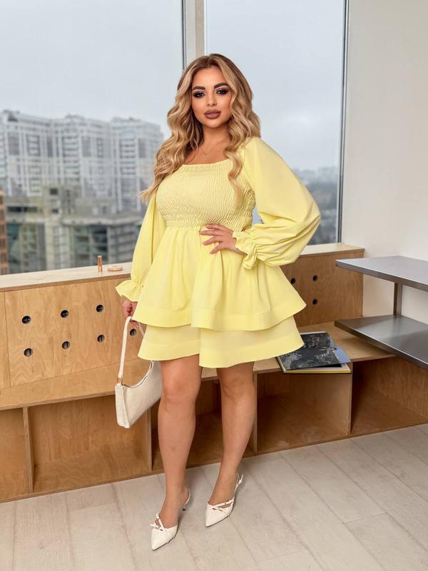 Модель 1570shmak Самая любимая модель в новой ткани Идеальное платье на все фигуры Цвета: лаванда, бургунди, черный и желтый Софт Размеры:48/50;52/54;56/58 48/50: ог-99-110; ос-100-110 52/54: ог-108-118; ос-110-120 56/56: ог-118-126; ос-120-128 Длина юбки - 45 Платье от груди-75