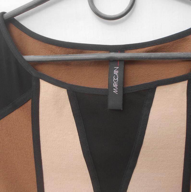Плаття MARC CAIN Плаття виготовлене преміальним німецьким брендом зі щільного еластичного матеріалу з віскозної суміші високої якості Модель має округлий виріз і вставки із сітчастої тканини на грудях. основна бирка зрізана на розмір S/M, дивіться заміри ПОГ 44 ПОТ 40 ПОБ 49 довжина 94 трішки тягнеться, без слідів шкарпетки нижня бирка зрізана склад з оф.сайту 75 віскоза, 25 поліамід