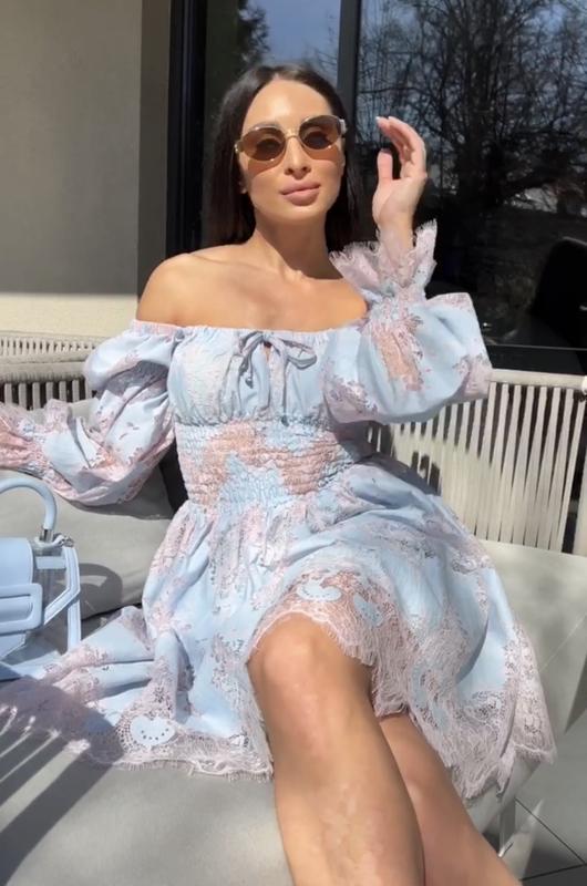 👆Сукня з шикарного крайового гіпюру Код 7985 Розмір L Колір - блакитний. Ліф та спідниця на батистовій підкладці. Спинка і груди на нитці резинці (ідеальна посадка) Обʼємний рукав, плече на резинці (можна носити і в спущеному варіанті). Груди регулюються куліскою
