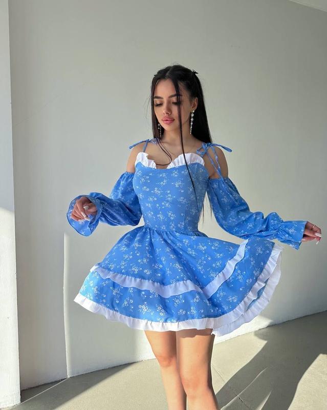 ⬆️Новинка Невероятно женственное платье из воздушной и воздушной ткани. На плечах завʼязки Мод 629❤️335 ▪️Тканина: софт ▪️Размеры: 42-44, 46-48 ▪️Цвета: черный с белыми цветками, голубой с белыми цветками ▪️Спинка на потайной молнии ▪️Хорошее качество ▪️Фото реал