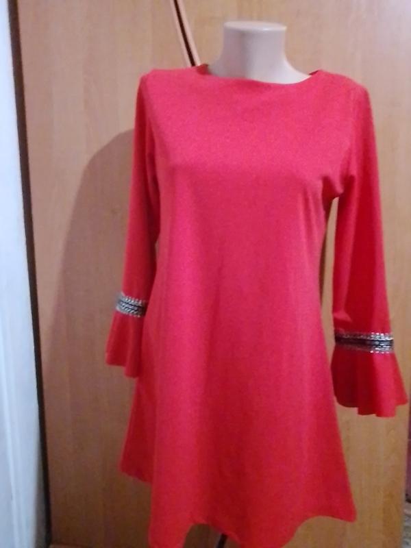 Платье короткое красивое яркого цвета в идеальном состоянии без дефектов Длина 79см Плечи 37см Полуобхват груди 47см Длина рукава 55см, внутренний шов 41 см