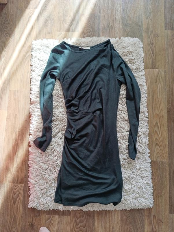 Платье легкое, со стороны сборка, цвет бутилочный камера не передала, тянется красиво