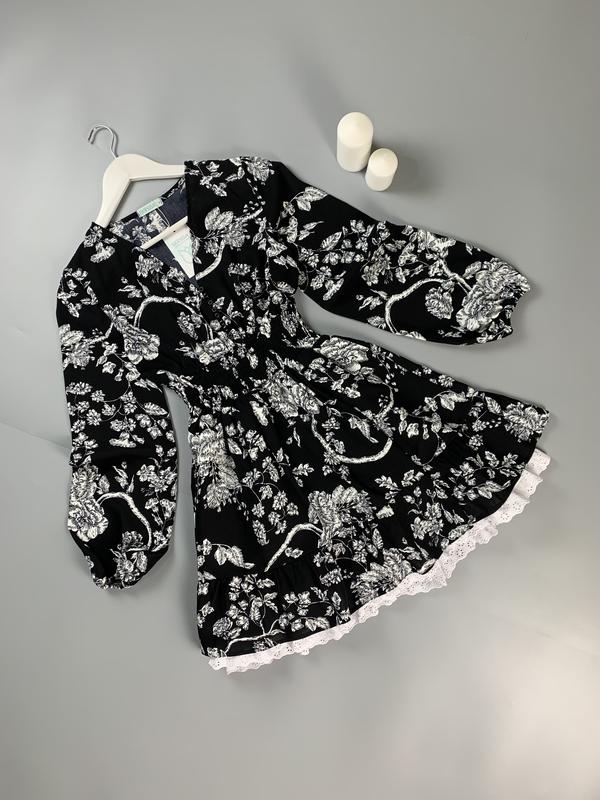 Цветочное черное платье с кружевом для твоего романтичного настроения от бренда Bessa. Изготовлена из ткани креп, которая отлично держит форму, не мнется и комфортно прилегает к телу. Цена сайта в два раза дороже. ▪️Размер: пишет L будет на М ✍️Замеры: Плечи-36см ПОГ-47см ПОТ-32см (тягнеться, резинка) ПОБ- свободно Длина рукава-60см Длина изделия-85см