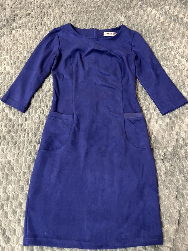 Синее велюровое платье на работу или на каждый день. Оделось несколько раз, хорошее состояние. Размер S
