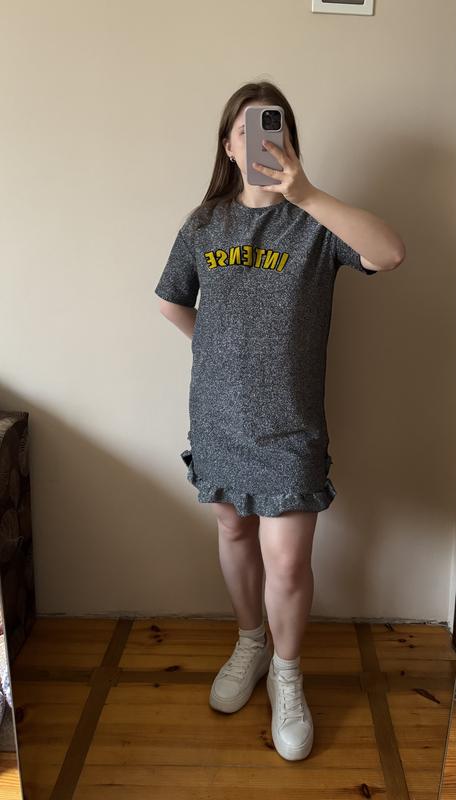 Стильное женское платье “INTENSE” 🔹 Цвет: темно-серый с меланжевым эффектом 🔹 Размер: Универсальный S-M Об-г: 104 см Об-б: 104см Длина: 85см 🔹 Материал: мягкая и приятная к телу ткань 🔹 Дизайн: модный оверсайз крой, стильная надпись “INTENSE” желтого цвета, оригинальные собранные края добавляют изюминку образу 🔹 Состояние: очень хороший ✨ Идеальный вариант для стильных образов! Подходит для повседневной носки, прогулок или casual-луков. 💰 Цена:130 грн 📍 Доставка: Новая почта и Укрпочта