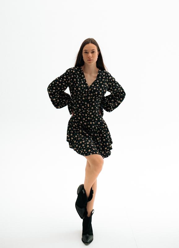 Платье в цветок с акцентной талией