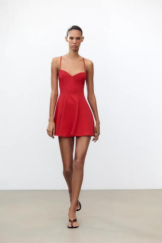 S,M,L Короткое платье с вырезом в виде сердца и тонкими регулируемыми бретелями. Скрытая молния сзади.