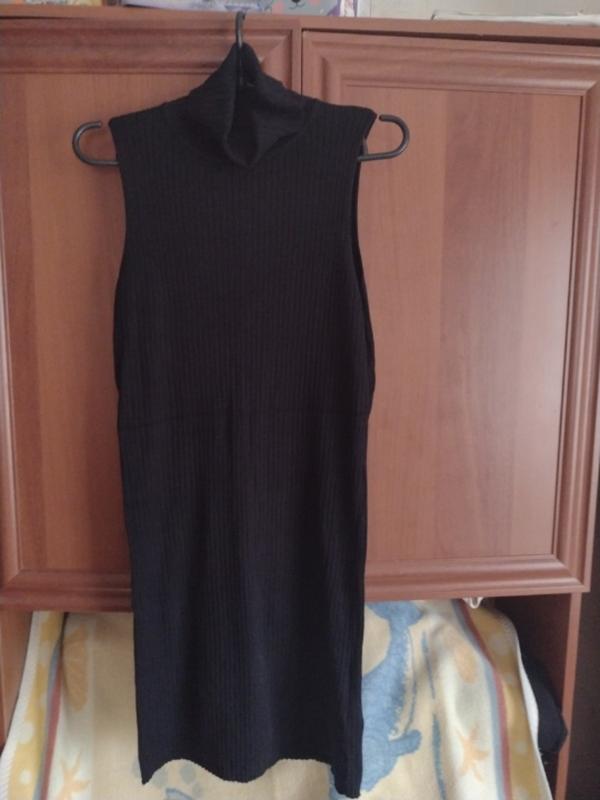 Короткое платье в рубчик с горловиной. Длина 89 см.