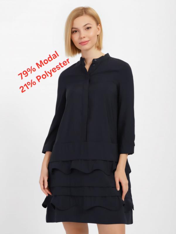Практичное лиоцеловое женское платье тёмно - синего цвета с карманами cos made in turkey