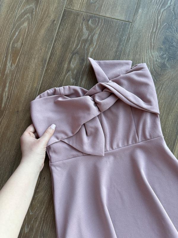 Очень красивое розовое платье с бантом на груди держится хорошо. Одевала дважды. Размер ХС. Фото на себе способно тоже отправить