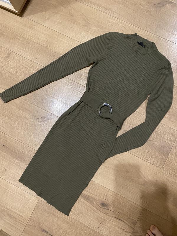 Платье приталено с поясом который можно снять. Размер м, но красиво тянется, подойдет даже на беременный животик.